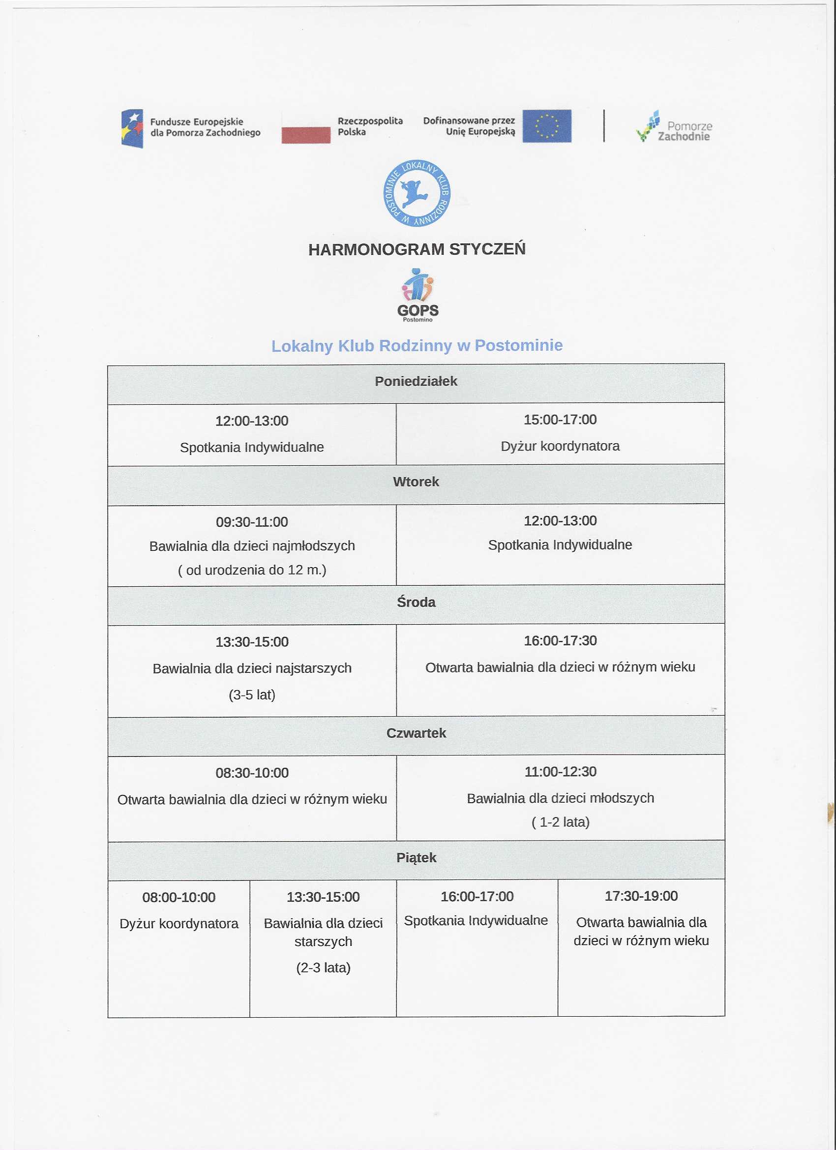 Harmonogram wsparcia w LKR w miesiącu styczeń 2026